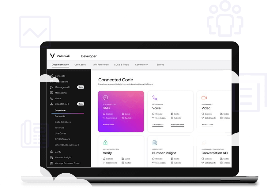 Mit den programmierbaren Lösungen von Vonage wird jede Kundeninteraktion zur Chance. Gehen Sie in Führung, indem Sie Ihre Reichweite, Interaktion sowie Kundenbindung erweitern und das gesamte Kundenerlebnis verbessern. Unsere zahlreichen Lösungen umfassen: